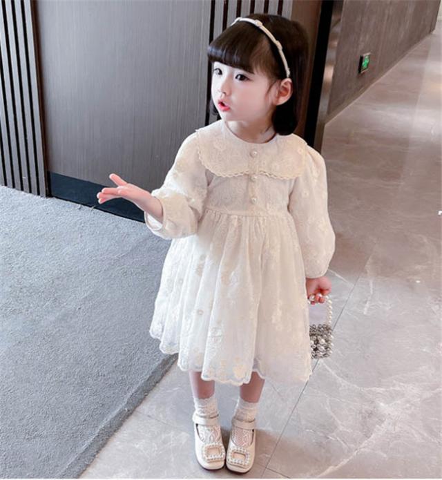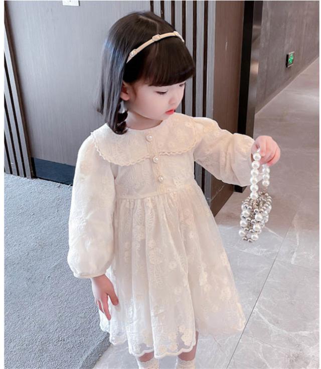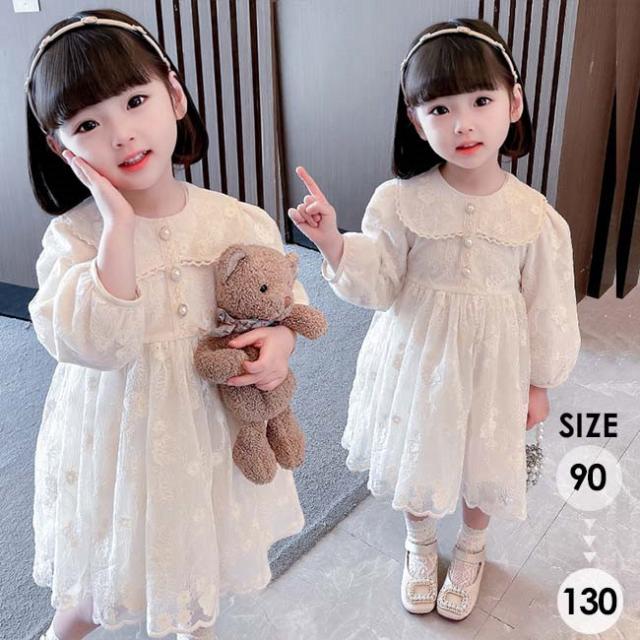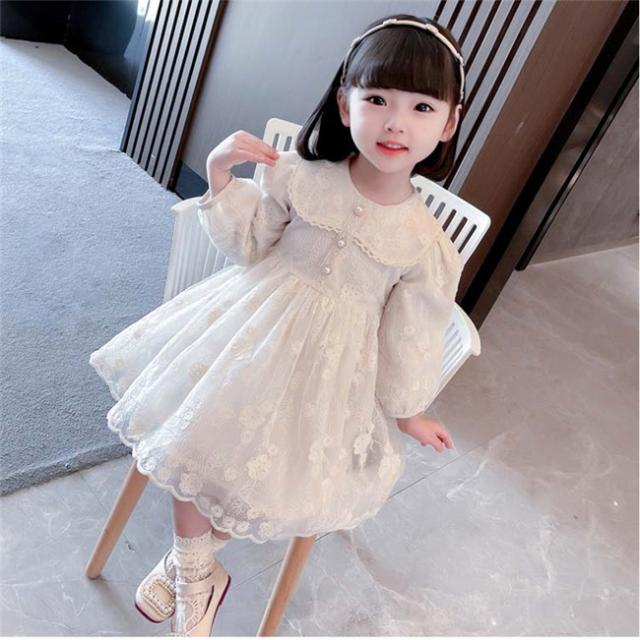 子供 ドレス 長袖 結婚式 ベビードレス キッズ プリンセス 韓国 子供服ベビー ワンピース レース刺繍 バルーンスリーブ エレガントなワンピース ベージュ コットンレース チュチュ 春 夏 秋 冬 発表会 写真撮影 dt540c0c0c9