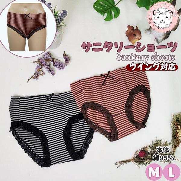サニタリーショーツ ヒップハンガー ボーダー ウイング対応 生理用ショーツ M/L