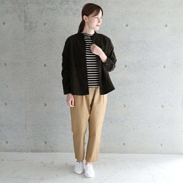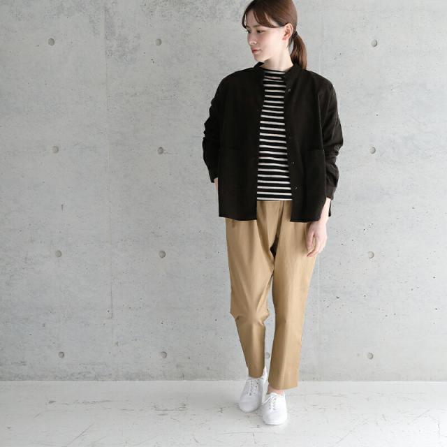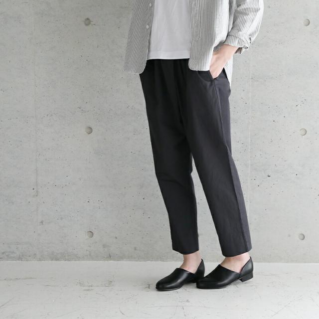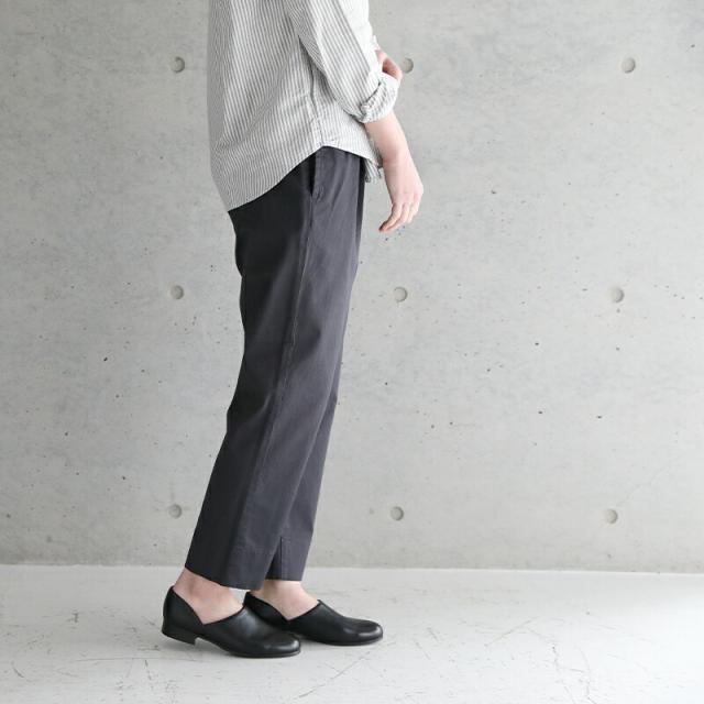 | 楽なのに、バランスよくきれいなシルエットに見せてくれる「ノームパンツ」。 デザインの細部にこだわり、日常にちょうどいいカジュアルさで スタイルを美しく作り出してくれるのはトラバイユマニュアルらしい1着です。 フロントに入った大きなタックがアクセント。 裾に向かって入ったテーパードで、脚のラインが綺麗に見えます。 コンパクトヤーンのストレッチが効いた素材は、リラックスした履き心地。 程良いハリと肉厚感で、オールシーズンで着用いただけます。 シンプルなデザインは着回し力も抜群です。 トップ写真 : ミディアムグレーSサイズ (モデル163cm) | ||||||||||||||||