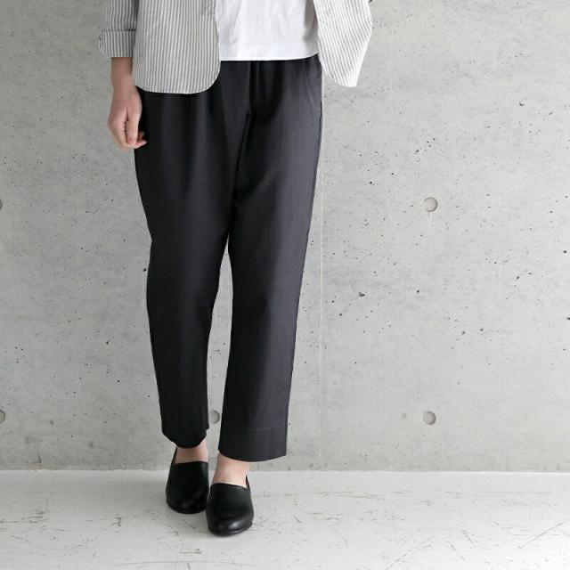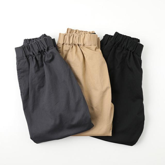 ![]() 着用カラー : ベージュSサイズ(モデル163cm) 脚のラインをスッキリ見せてくれる、やや細めのスタイル。 ストレッチが効いているので、履きやすいです。 ![]() どこから見ても美シルエット。 ![]() 裾にかけて付いたテーパードが、カジュアルに大人な印象をプラス。 ![]() 着用カラー : ミディアムグレーSサイズ (モデル163cm) 程よいハリ感と光沢感があるので、シャツとの相性も◎。 ![]() ![]() 着用カラー : ブラックSサイズ (モデル163cm) シンプルなデザインながらこだわりのディティールが詰め込まれているので、雰囲気のある着こなしができますよ。 ![]() サイドは便利なポケット付き。 ![]() 股上の重なりがウエストのアクセントになっています。 ![]() ウエストはリラックス感のあるゴムに、紐が付いているので微調整が可能です。 ![]() 裾の幅広ステッチは ロールアップした際に綺麗に見えます。 | ||||||||||||||||