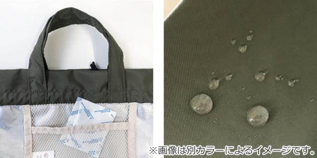 | メッシュポケット付き 内側にはメッシュポケットが付いているので、保冷剤や小物入れに使えて便利です。 | 雨の日も安心の撥水加工 雨水や汚れに強い撥水加工を施した素材を使用しているので、雨の日のお出かけも安心です。 |