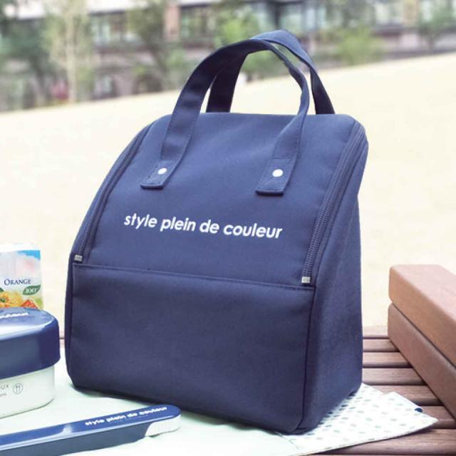 シンプルなデザインで普段使いにもおすすめの保冷機能付きランチバッグです。ランチバッグの背面がまっすぐなので、持ち運びの際に傾きにくく、お弁当のおかずの片寄りも防げます。背面には大きなポケットが付いていて、小物が入れられるので便利です。