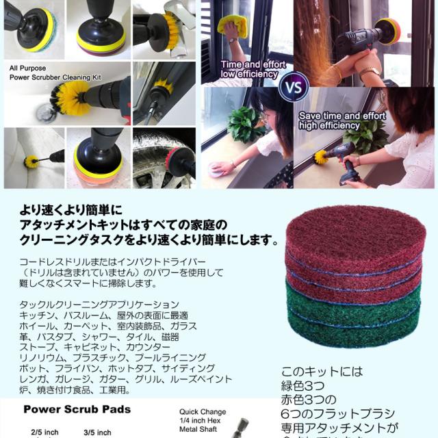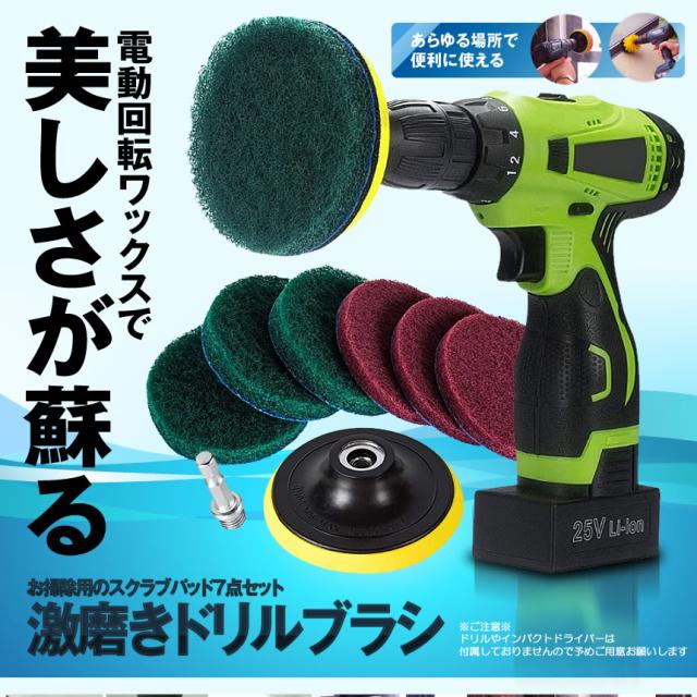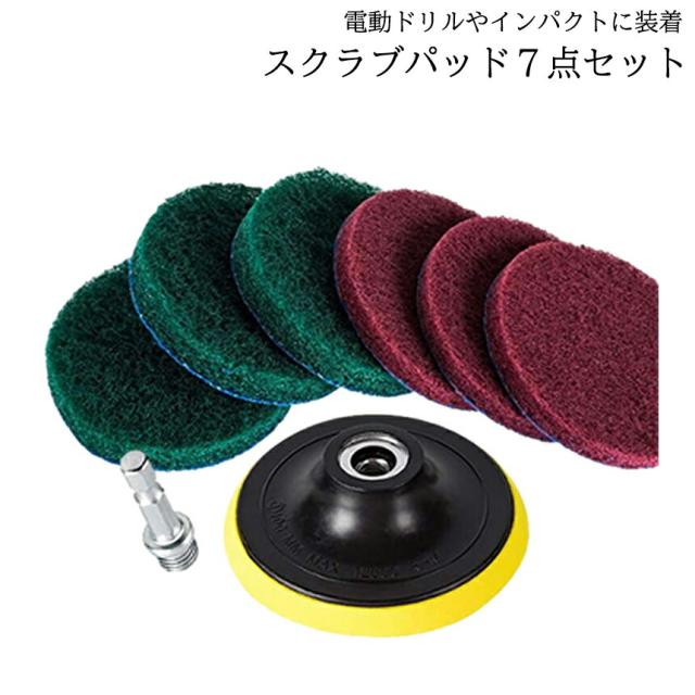 スクラブ パッド 7点セット バフ 研磨 ポリッシャー 掃除 洗車 ワックス 磨き 電動 ドリル インパクト ドライバー アタッチメント 車 クリーニング 磨く DORIPAD 送料無料