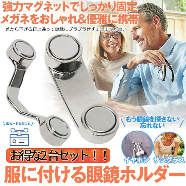 マグネット メガネ サングラス ホルダー 2個 置き忘れ 紛失 防止 磁石 服につける 眼鏡 めがね 服 メガネホルダー 名札 イヤホン ネームプレート 2-MEGAJISYA 送料無料 TOKU