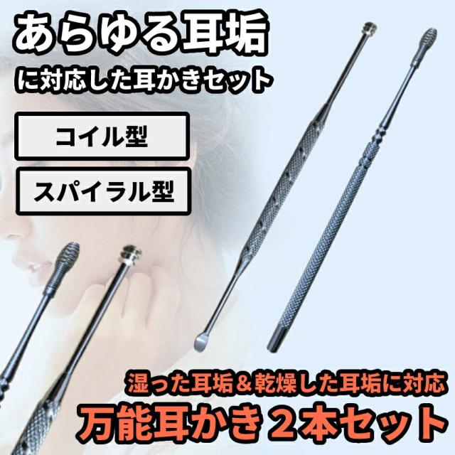 よく取れる 耳かき 2本セット ステンレス スプーン コイル スパイラル タイプ 水洗い 可能 ソフト タッチ 耳垢 みみかき 耳 イヤー ピック クリーナー MIMIKK 送料無料