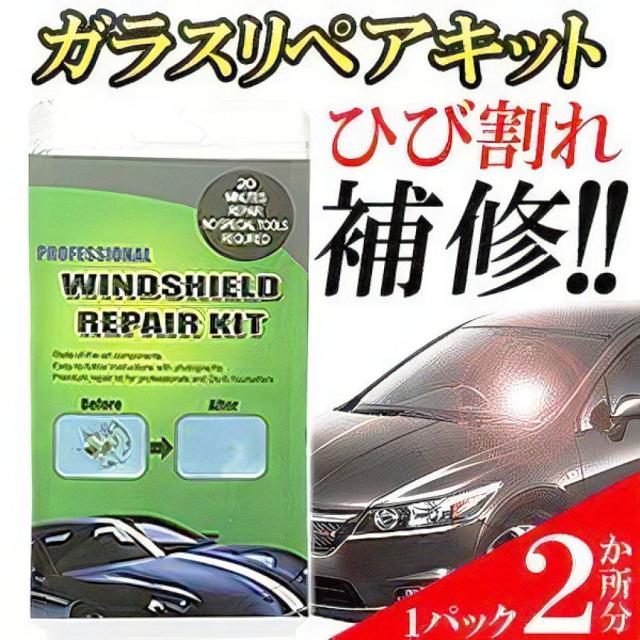 フロント ガラス ひび 割れ 補修 リペア キット 2ヶ所分 飛び石 車用 窓 傷 キズ ヒビ 簡易 修理 修復 直し レジン 凝固 穴 埋め 応急 処置 車 カー 用品 1000円 均一 ポッキリ HIBIRI 送料無料
