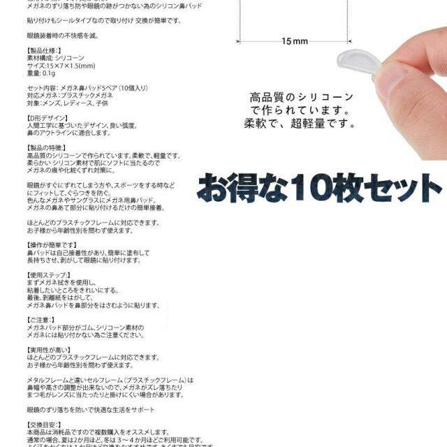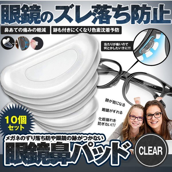 メガネ 鼻 パッド 10個 セット シリコン パッド 眼鏡 ズレ 防止 めがね サングラス 鼻あて 跡 つきにくい 痛み 軽減 シール クリア 柔らかい シリコン メイク 10-HANAPAD-CR 送料無料