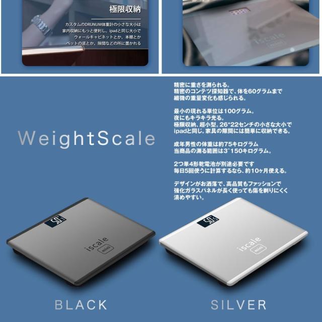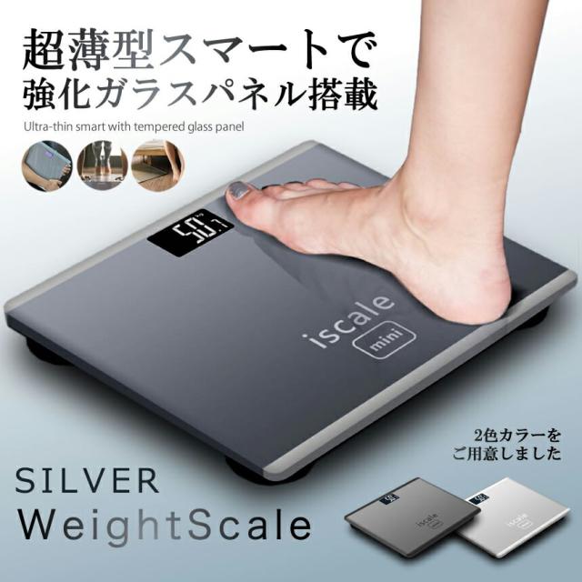 薄型 デジタル 体重計 シルバー 150kg まで 乗るだけ 自動 電源 ON OFF 体重 量り 健康 100g 単位 測定 バックライト 電子 軽量 コンパクト ペット TAIJYU-SV 送料無料