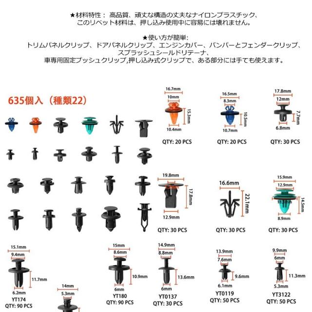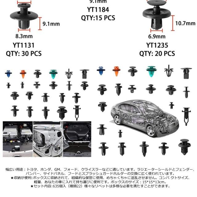 リベット 22種類 635個 セット リムクリップ バンパークリップ プラスチック 自動車 フェンダー バンパー リム クリップ 汎用 カー 用品 車 カスタム CARLIVET 送料無料