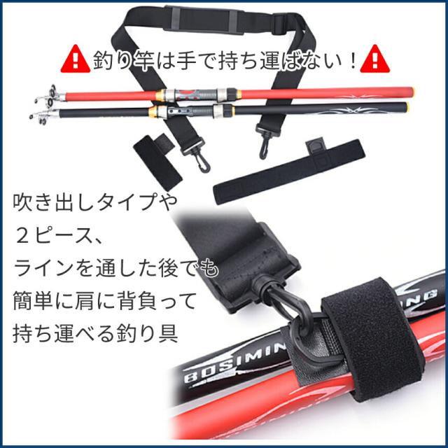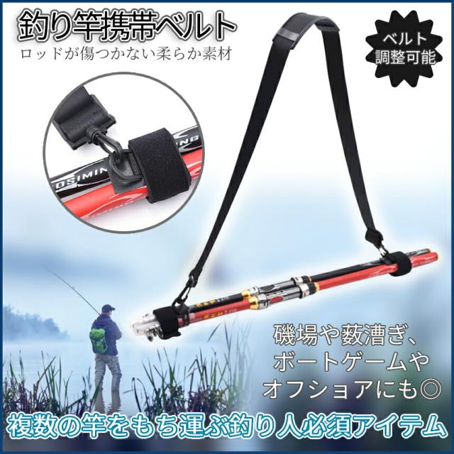 釣り 竿 ショルダー ベルト 釣竿 携帯 釣り竿 ロッド 便利 ロッドキャリー ストラップ フィッシング 持ち運び 肩 パッド マジックテープ 長さ 調節 可能 SAOBELT 送料無料