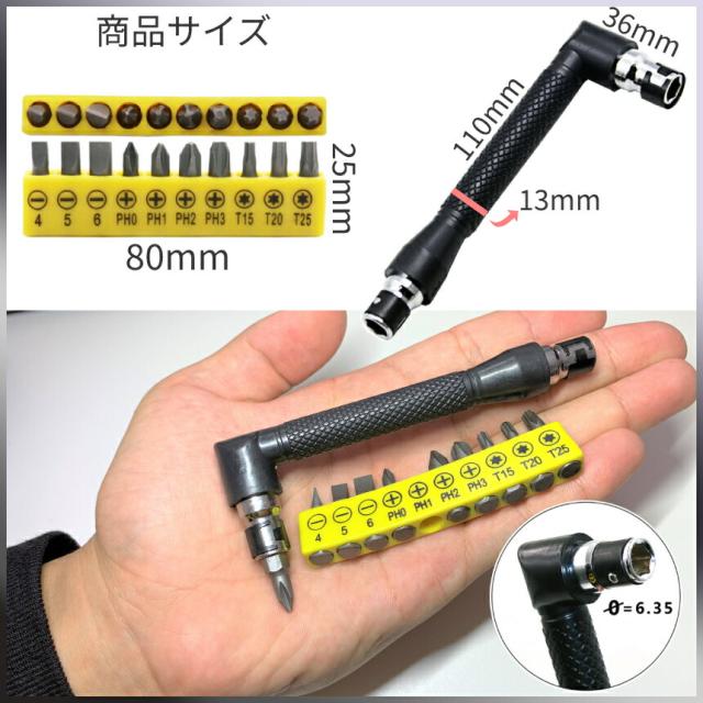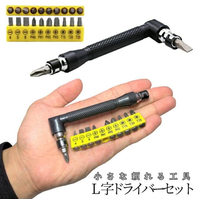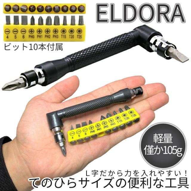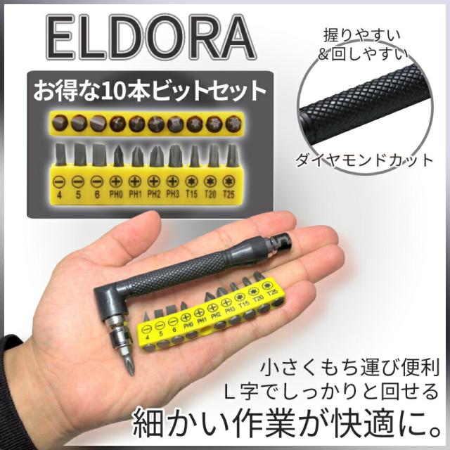 L字 ドライバー ビット 10本 セット L型 エクステンション ハンドル ダブル ヘッド 双方向 プラス マイナス 六角 レンチ DIY 工具 自転車 バイク 修理 ELDORA 送料無料