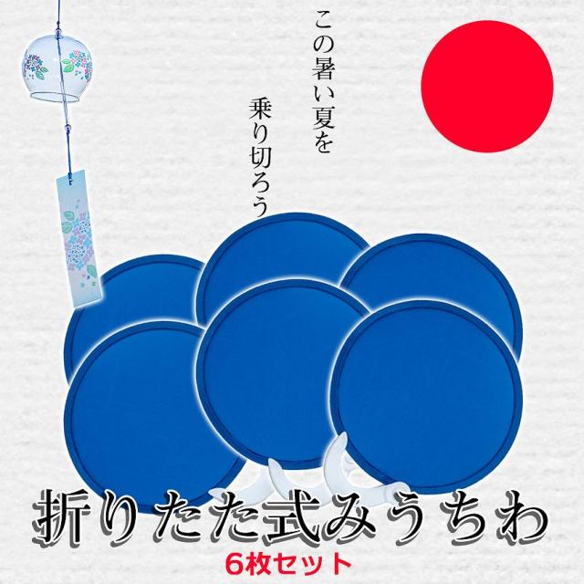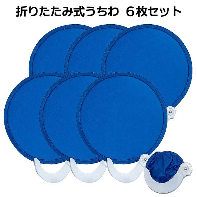 折りたたみ うちわ 6個 ポータブル コンパクト サイズ ブルー 夏 ミニ ウチワ 団扇 涼しい ポケット 旅行 キャンプ アウトドア 花火 大会 祭り 丸 景品 6-ORIUTI 送料無料 TOKU