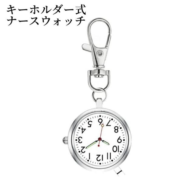 ナース ウォッチ ホワイト 逆さ 時計 懐中時計 長針 短針 蓄光 キーウォッチ キーホルダー ナスカン シンプル リュック バッグ ポケット ランドセル NASWATCH-WH 送料無料