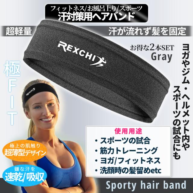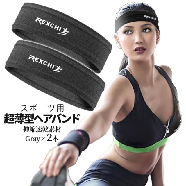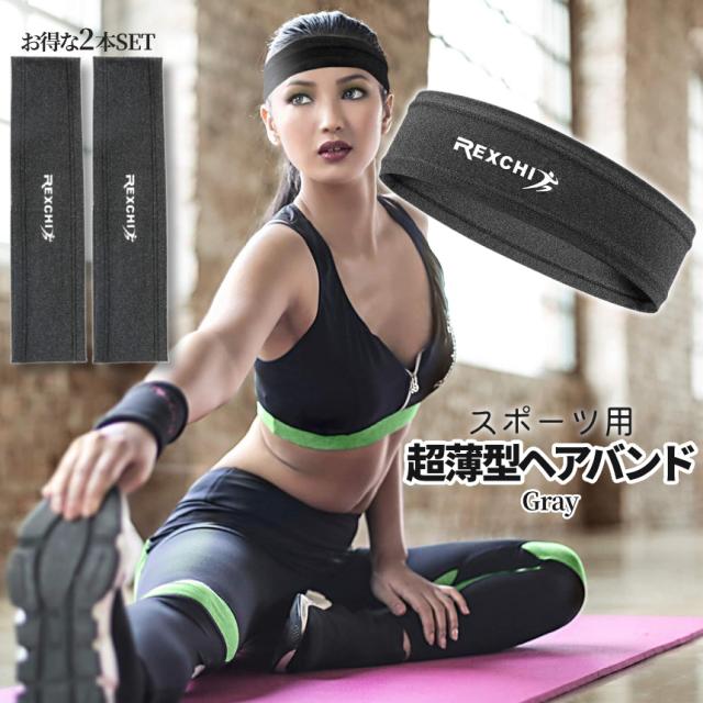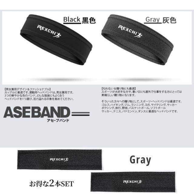 ヘアバンド 汗 対策 グレー 2個 スポーツ ヘッドバンド 男女 兼用 抗菌 防臭 バンド 柔軟 ランニング ウォーキング ジム エクササイズ 運動 2-ASEBAND 送料無料 TOKU