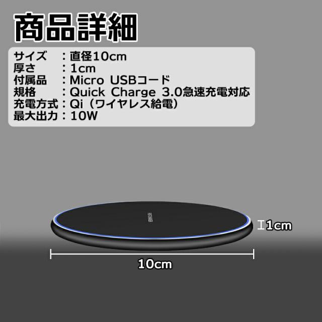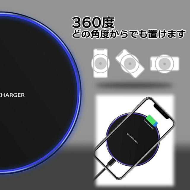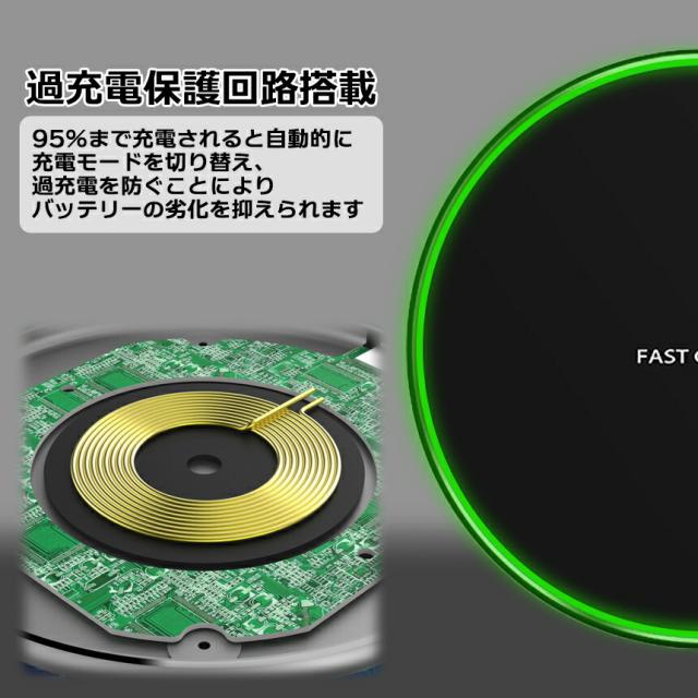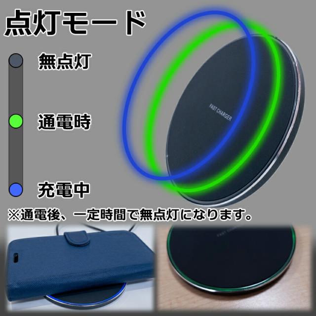 ワイヤレス 充電器 Qi充電 ブラック 簡単 iPhone アイフォン アンドロイド スマホ 携帯 充電 Quick Charge 急速 過充電 防止 置くだけ おくだけ LED 点灯 OKUNDA 送料無料