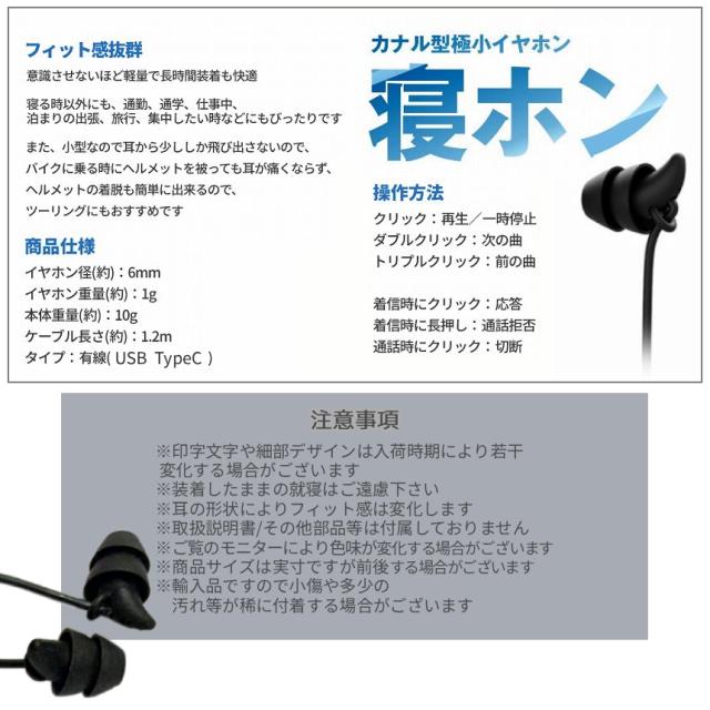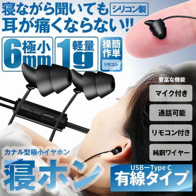 イヤホン 有線 type-c USB タイプC 小型 ミニ 極小 6mm 軽量 カナル型 マイク コントローラー 動画 音楽 通話 耳 痛くない 柔らかい スリーピング 就寝 睡眠 横向き 寝ながら 寝ホン シリコン iPhone Android スマホ タブレット NEYAHON 送料無料