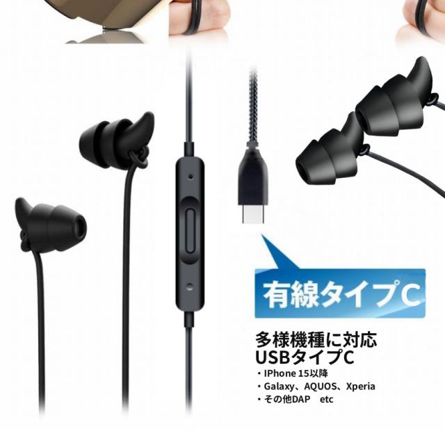 充電不要の有線タイプ(USB タイプC) 寝る時以外にも、通勤、通学、仕事中、