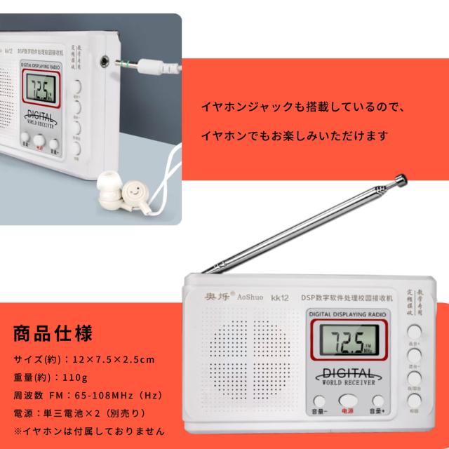 携帯 ポケット ラジオ ワイド FM 対応 小型 ミニ 高感度 受信 スピーカー イヤホン ジャック ポータブル 持ち運び 軽量 ポケットラジオ 液晶 電池 DSP POKERADI 送料無料