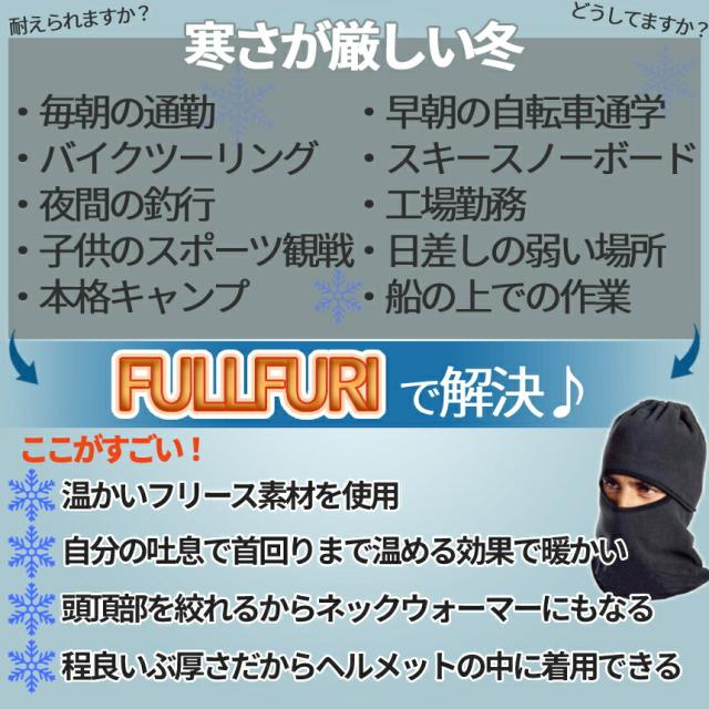 フリース フェイス ガード 防寒 対策 フルフェイス ヘルメット インナー 目出し帽 秋 冬 通勤 通学 自転車 バイク 原付 首 頭 顔 暖かい スキー スノボ FULLFURI 送料無料