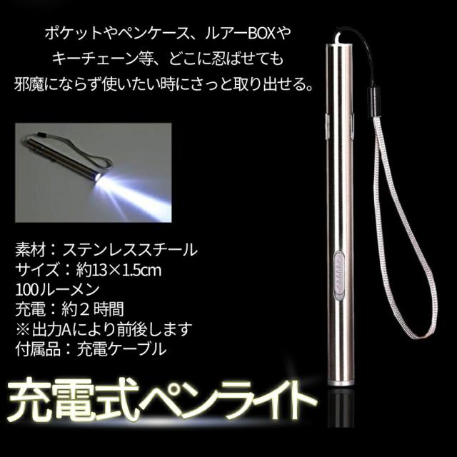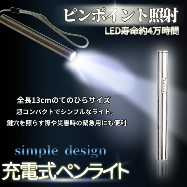 小型 LED ペンライト USB 充電 懐中 電灯 作業灯 ペン ライト ハンディ ミニ ペン型 作業 コンパクト アウトドア 釣り キャンプ 簡単 操作 シンプル PINPENRA 送料無料