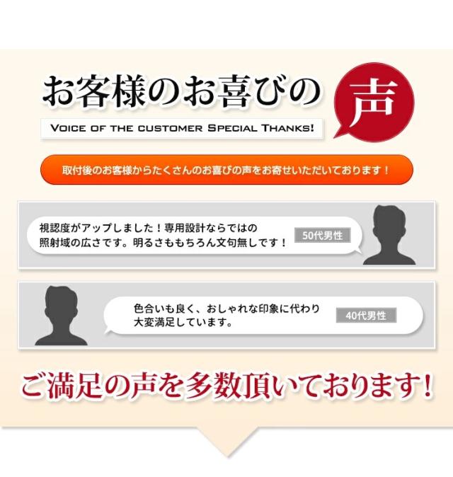 ■長時間の点灯は、ユニットが熱を持つ場合がございます。 ■レンズ/ユニットの傷防止のためにマスキングテープなどで保護してからのご使用をおすすめします。 ■無理にこじ開けると破損の原因となりますので、十分注意してご使用ください。 ■本品またはご使用の際のキズ・破損等に対する保証はございません。ご使用は自己責任にてお願い致します。 |