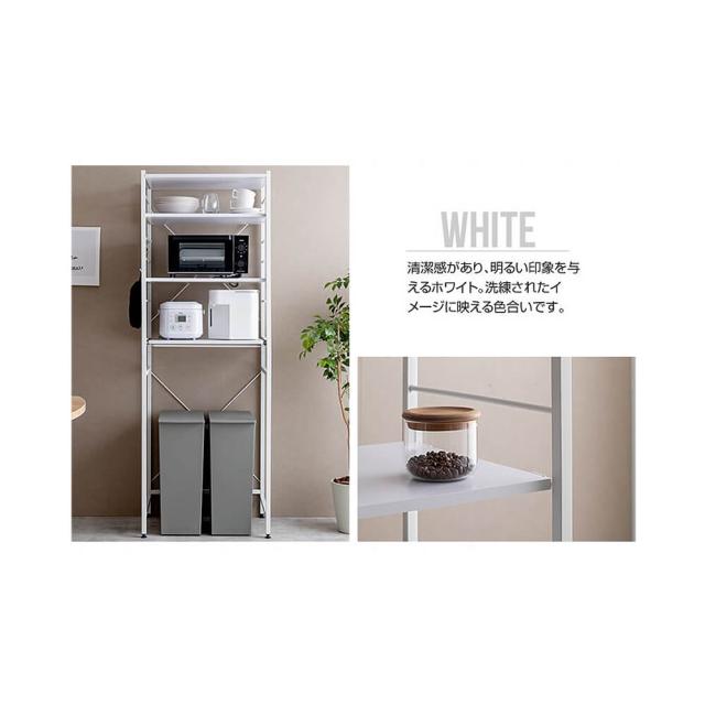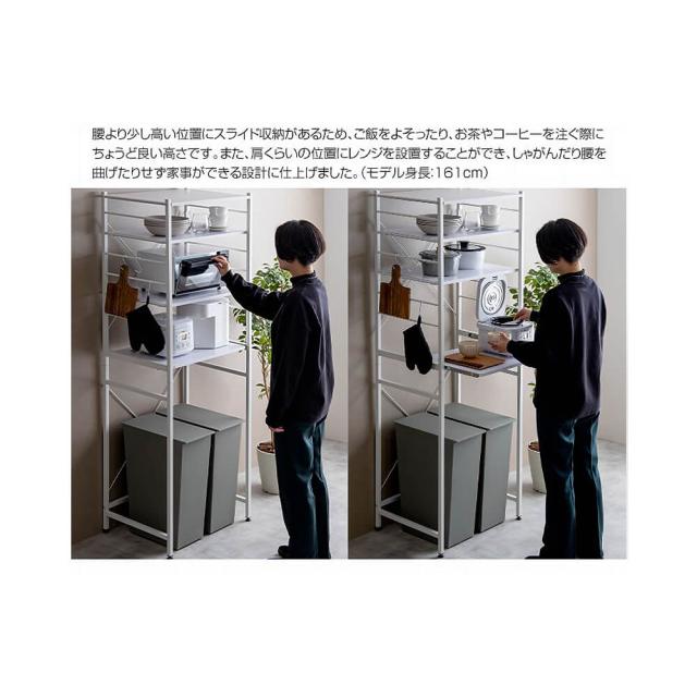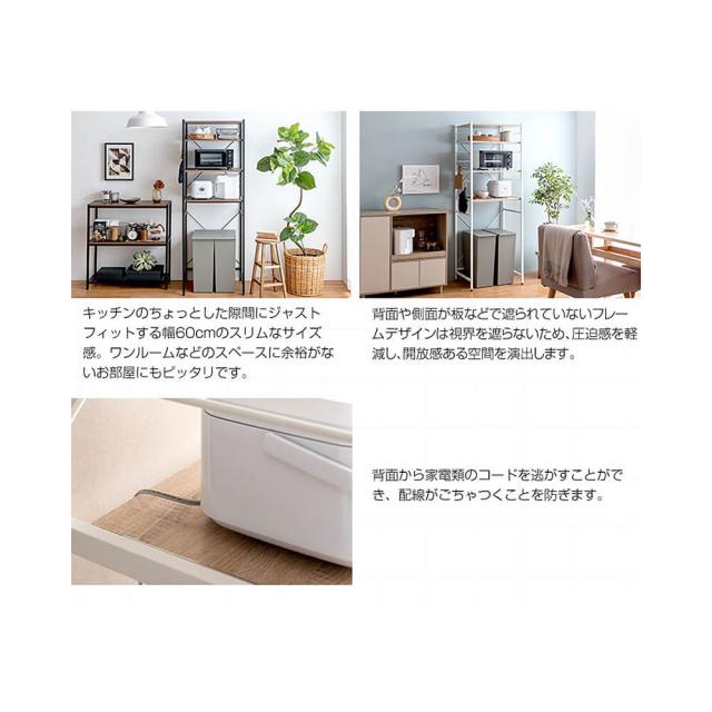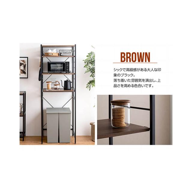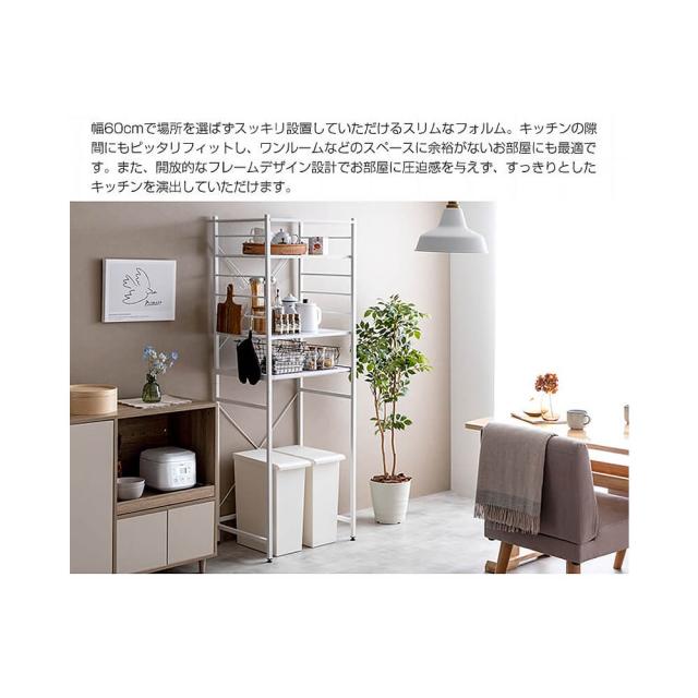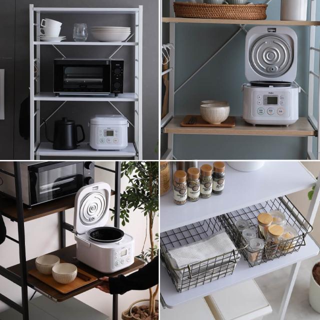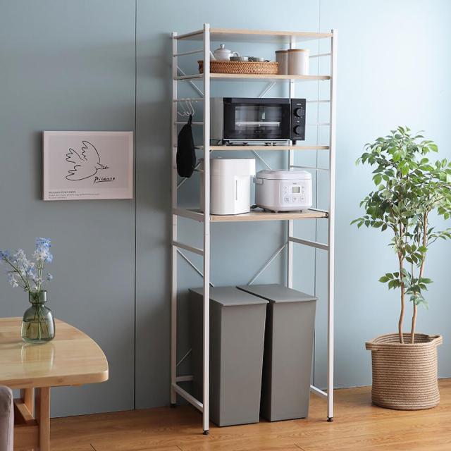 こちらのラックを使用すれば、キッチン周りのアイテムをまとめて収納できるスペースとして活躍します。