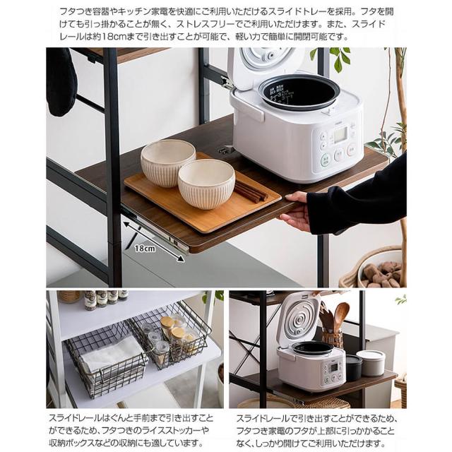 可動棚やスライド収納を採用しているので、蓋の付いた容器やキッチン家電などにもピッタリの大容量収納スペースとなります。