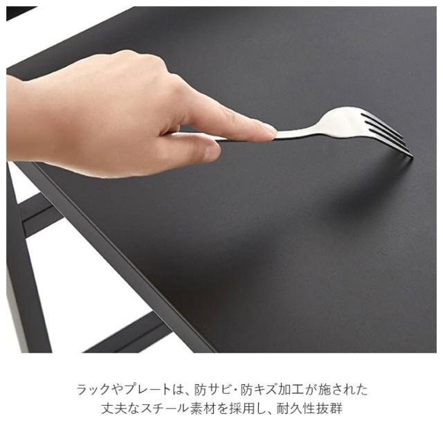 | 素材 | [本体]スチール ※[セット内容] ラック台×左右2、プレートパネル×1 背面M型ガードレール×1、パイプロック×2 六角レンチ×1、J字型フック×3、ネジ×4 取扱説明書(英語・中国語表記) |