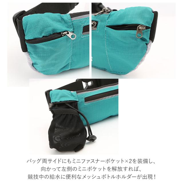 | 商品説明 | ・競技中でもスマートに小物が持ち運べる!軽量&コンパクトな「4ポケット・ランニングポーチ」が新登場! ・ランニング中は伸縮性抜群のベルトでウエストバッグとして装着でき、斜め掛けにすればスポーティーなボディバッグにもなる2WAY仕様。 ・バッグの正面にはスマホやコインケースが収納できるメインファスナーポケット、最前面にキーケースやカードが収納できるフロントファスナーポケット、2つの便利なポケットを縦に並べて配置。(※スマートフォンのサイズによっては収納できない場合もございます。お手持ちの機器のサイズを事前によくご確認ください。) ・バッグ両サイドにもミニファスナーポケット×2を装備し、向かって左側のミニポケットを解放すれば、競技中の給水に便利なメッシュボトルホルダーが出現! ・身体に触れるバッグ背面には通気性のよいメッシュ生地を採用。バックル式ベルトでバッグの装着がスムーズ。 ・バッグの生地は、ランニング中に急な雨にあっても安心なはっ水加工済み。さらに、フロントファスナー部分を縁どるリフレクター素材で、夜間のトレーニングでも大活躍! |