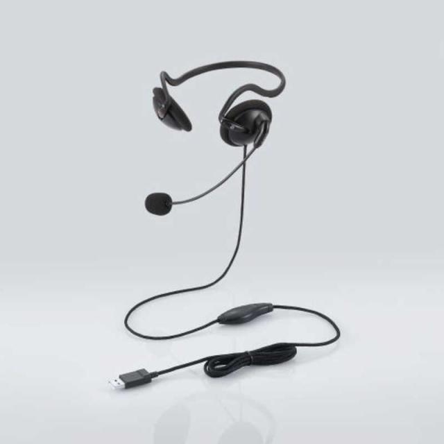 エレコム ELECOM ヘッドセット (ステレオ/有線/USB接続/両耳/ネックバンド型/無指向性/ヘッドホン/マイク付き)ブラック HS-NB05UCBK