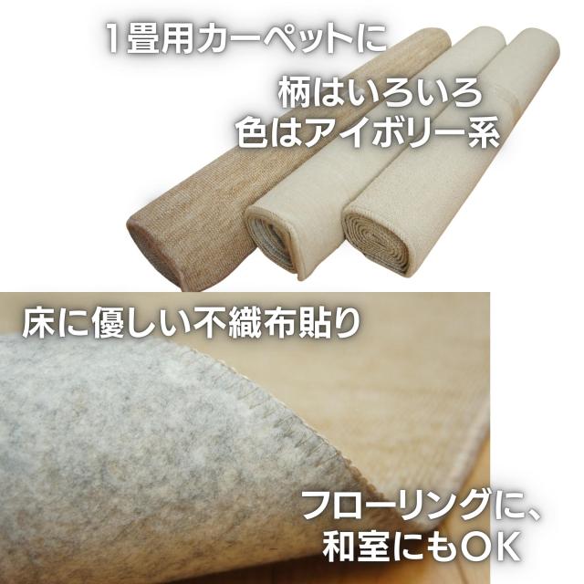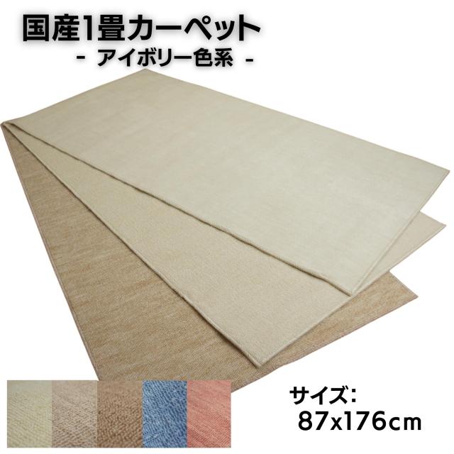 国産1畳カーペット 87x176cm アイボリー色系 柄はおまかせ 日本製 不織布貼