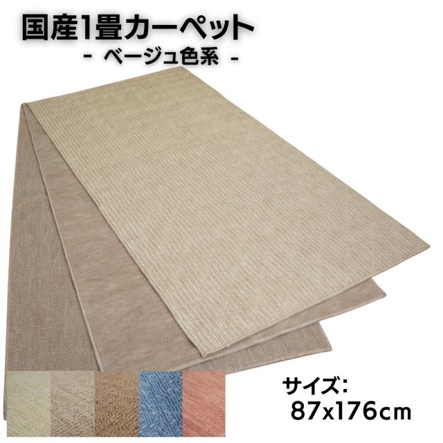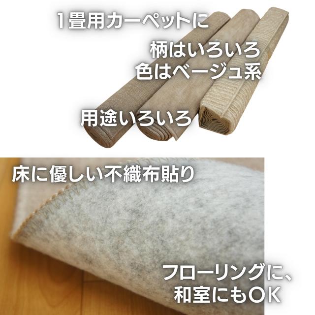 国産1畳カーペット 87x176cm ベージュ色系 柄はおまかせ 日本製 不織布貼