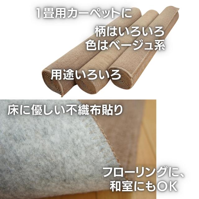 国産1畳カーペット 87x176cm ブラウン色系 柄はおまかせ 日本製 不織布貼
