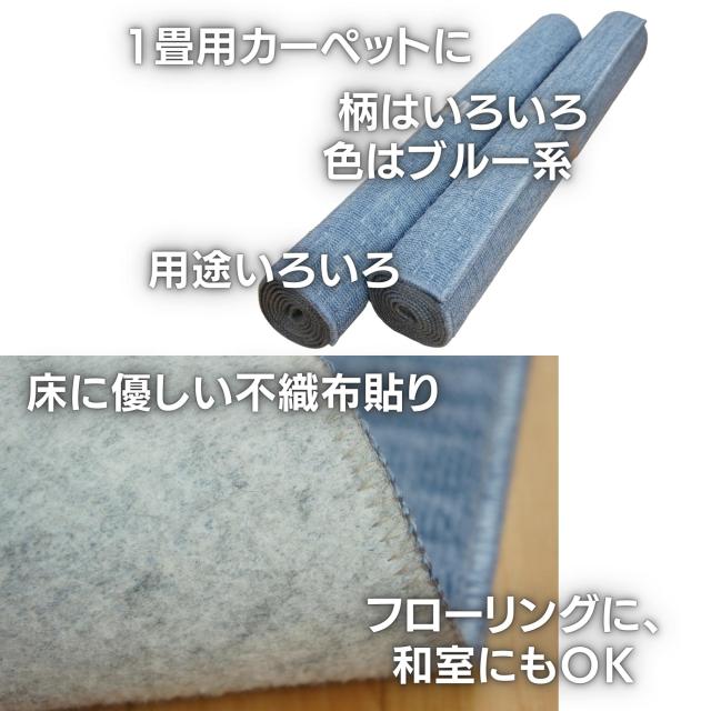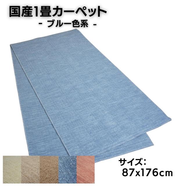 国産1畳カーペット 87x176cm ブルー色系 柄はおまかせ 日本製 不織布貼