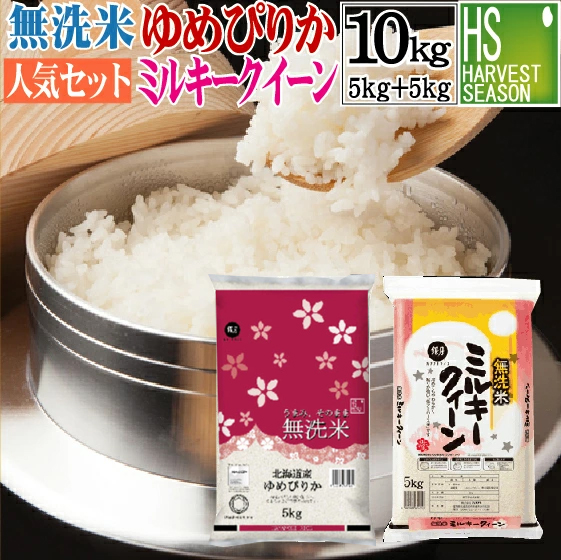 令和7年産 無洗米 北海道産ゆめぴりか5kg と 滋賀県産ミルキークイーン5kg の計10kg組合せセット 【送料無料/北海道沖縄別途760円】