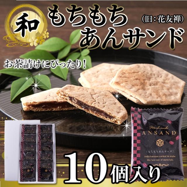 もちもちあんサンド(旧花友禅)薄い生地で お餅 と 粒あん を挟んだ上品な 和菓子 !! 10個入 羽二重餅 ネコポス 送料無料