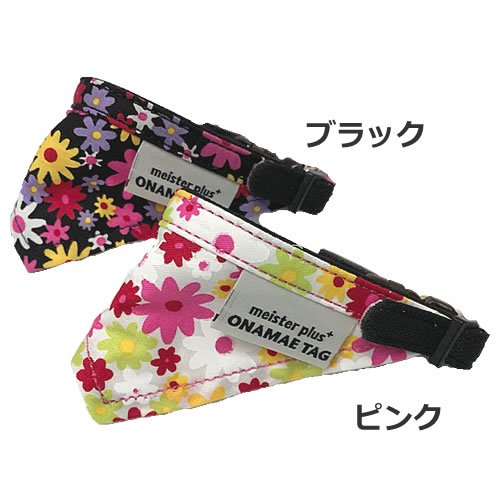 【メール便】カワノ産業 マイスター ONAMAEキャットバンダナ フラワー ブラック/ピンク 猫用 鈴 バックルタイプ 可愛い