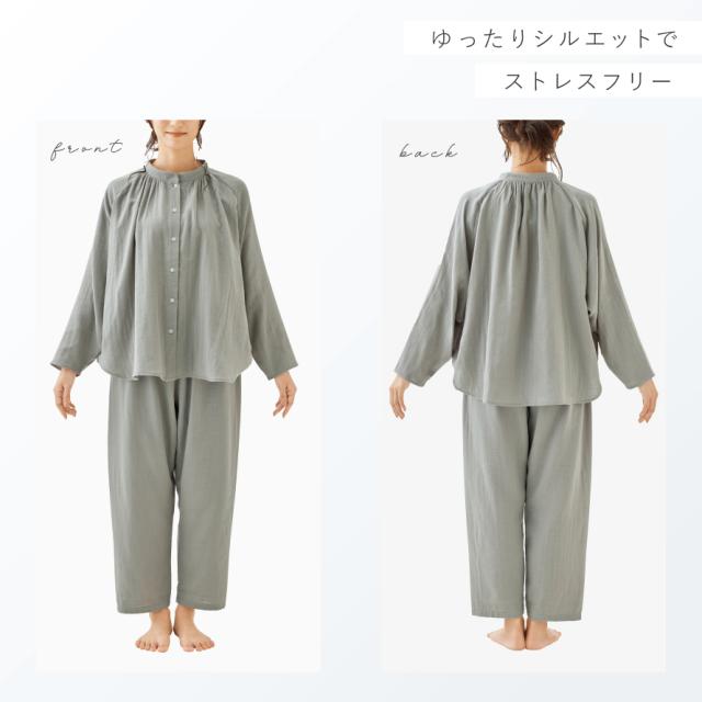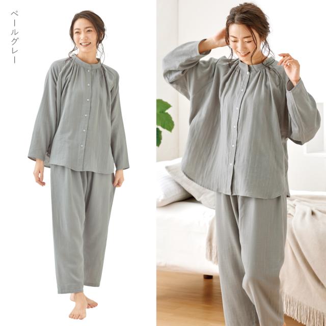 パジャマ,レディース,ダブルガーゼ,二重ガーゼ,2重ガーゼ,綿100%,コットン100%,綿,コットン,100,ガーゼ,天然由来成分配合,シアバター,シルクアミノ酸,オリーブオイル,衿なし,前開き,長袖,ドルマン袖,ドルマンスリーブ,テーパード,ギャザー,グレー,ピンク,敏感肌,乾燥肌,肌に優しい,うるおい成分配合,うるおい,しっとり,ルームウェア,ホームウェア,部屋着,家着,涼しい,暖かい,カジュアル,無地,シンプル,リラックス,動きやすい,吸汗,通気性,汗,べたつかない,ベタつかない,さわやか,爽やか,さらさら,サラサラ,さらっとしている,春,夏,春夏,秋,冬,オールシーズン,ふんわり,やわらかい,柔らかい,ソフト,肌触り,ソフトタッチ,快適,心地よい,おしゃれ,お洒落,オシャレ,かわいい,可愛い,大人かわいい,大人可愛い,ベーシック,定番,ヘビロテ,ファッション,コーディネート,普段使い,デイリーユース,おすすめ,オススメ,素材,生地,気持ちいい,ギフト,プレゼント,誕生日,誕生日プレゼント,敬老の日,母の日,大人,大人用,女性,女性用,婦人用,ミセス,ウィメンズ,婦人,ママ,母,母親,お母さん,おばあちゃん,祖母,お年寄り,高齢者,シニア,20代,30代,40代,50代,60代,70代,80代,洗える,ウォッシャブル,洗濯...