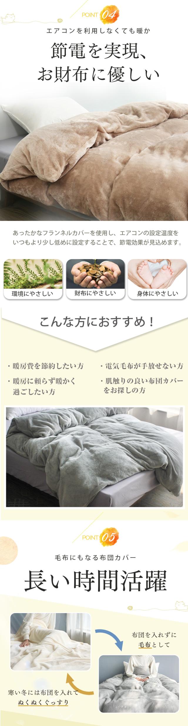 毛布がいらない掛け布団カバー シングル 暖かい冬用布団カバー 羽毛布団カバーにもおすすめ 2枚合わせ毛布、シーツにもなる2WAY仕様 フランネル生地の掛けカバー あったか 毛布カバー