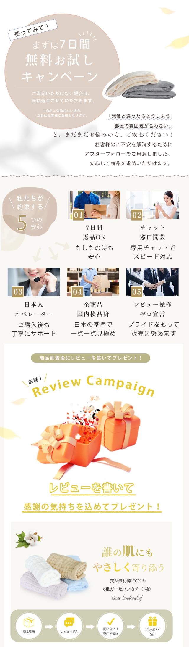 - 「1日〜4日」で発送とありましたが4日後に発送連絡あり、なるべく早く受け取りたかったので到着まで長く感じてしまいましたが商品自体は手触りがとてもよく、買ってよかったです。程よい重みがあり暖かく眠れてい...