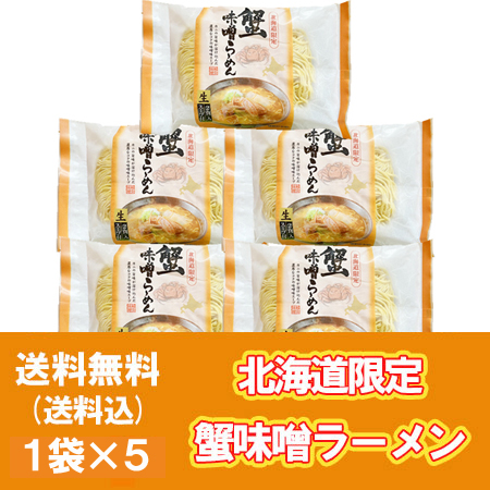 北海道限定 蟹 生ラーメン 味噌 生ラーメン お取り寄せ 送料無料 カニ 生 ラーメン かに / カニ / 蟹 ラーメン 生麺 味噌味 1袋×5 麺類 ラーメン