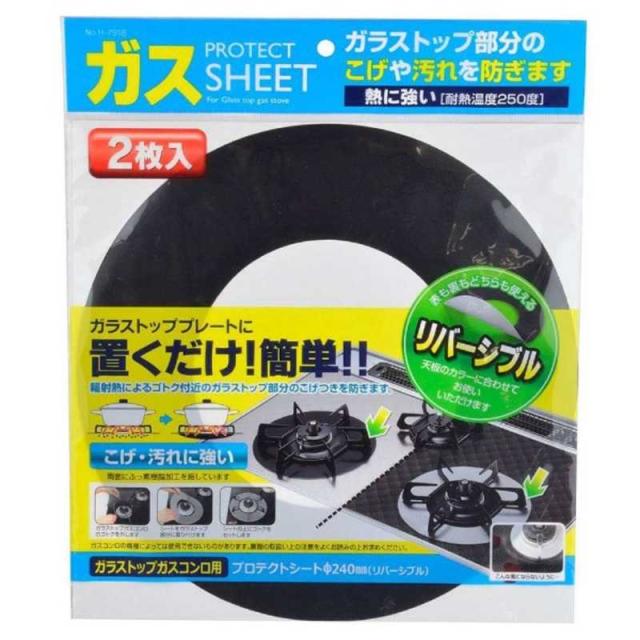 ガスコンロのガラストップ部分に置くだけで、焼け焦げ、黒ずみ、キズつきを防ぐ。