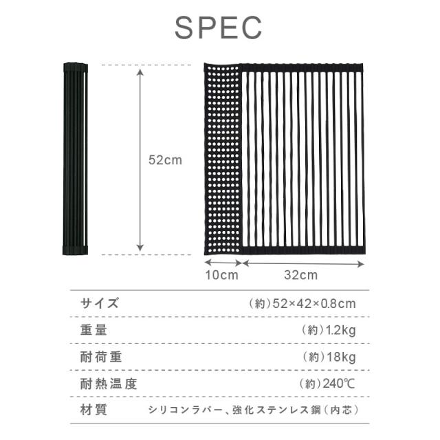 水切りラック シンク上 スリム 折りたたみ 水切りマット シリコン キッチン 水切り 水切 水きり 水切りかご コンパクト 抗菌 錆びない 52×42cm 収納 洗い物 水切りトレー 流し台 シンク内
