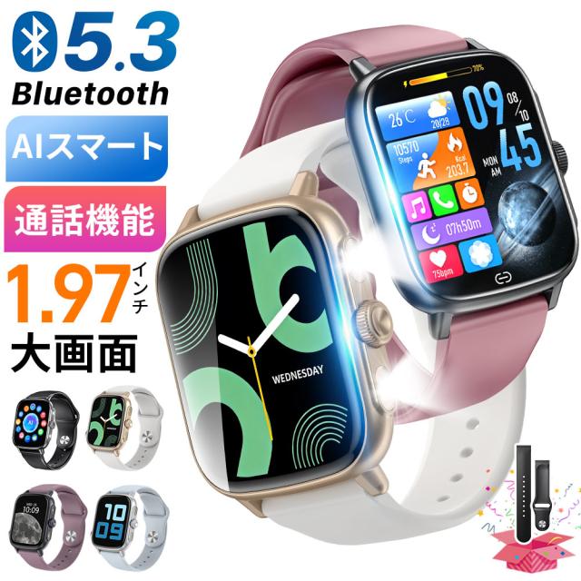 「母の日限定1000円クーポン配布中」スマートウォッチ 通話機能 血中酸素 1.97インチ 心拍数 睡眠検測 AI搭載 歩数計 カメラ制御 腕時計 心拍 歩数計 着信通知 健康管理 睡眠検測 音楽再生 IP67防水 腕上げ点灯 iOS/Android LINE通知 日本製センサー ギフトプレゼント