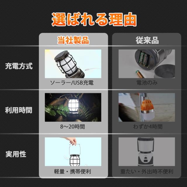USB充電式&ソーラー充電 18650電池対応(本体に一個付き)突然の停電や充電切れにも安心です。