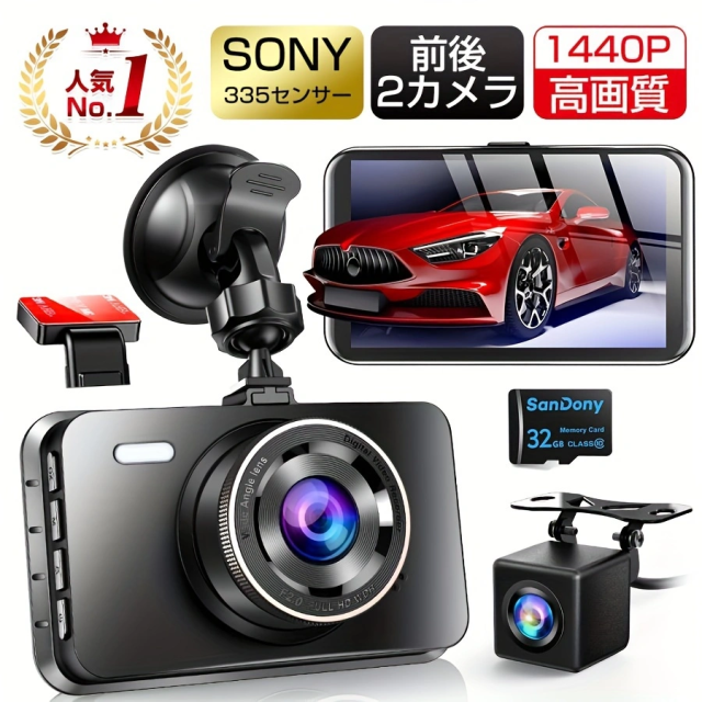 ドライブレコーダー 前後 2カメラ 1440PフルHD 液晶パネル 170°広視野角 高画質 デュアルドラレコ 車載カメラ 常時録画 Gセンサー ループ録画 32Gカード付