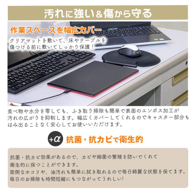 PVCクリアデスクマット 60×120 抗菌 抗カビ 60×120cm 机 オフィス 傷防止 撥水 クリア 透明 クリアマット