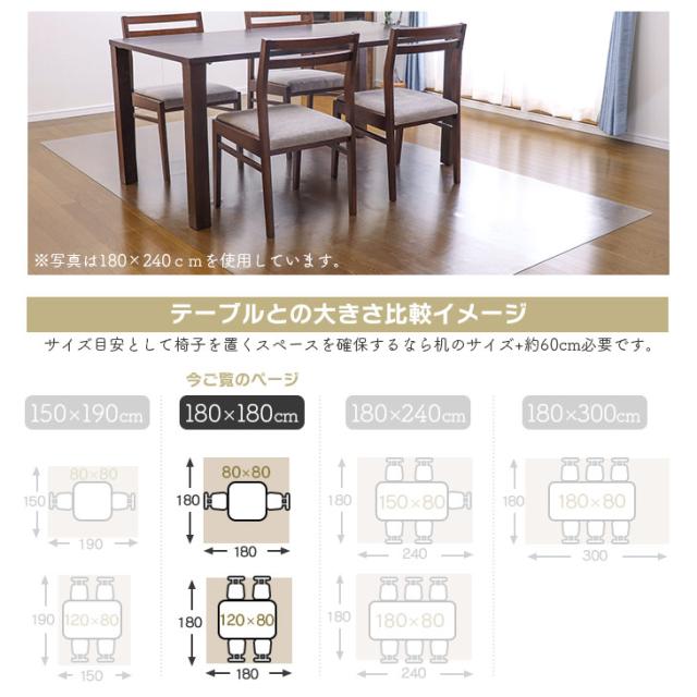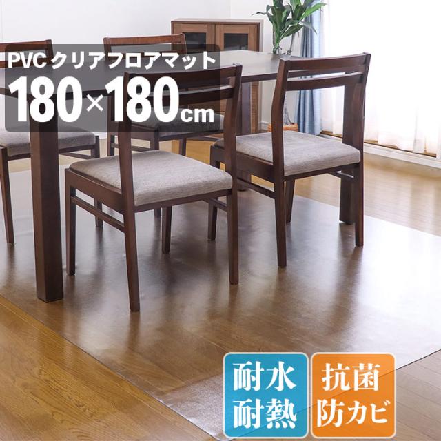 PVCクリアフロアマット180×180 抗菌 抗カビ 180×180cm リビング フロア 傷防止 床 北欧 秋 冬 クリア 透明