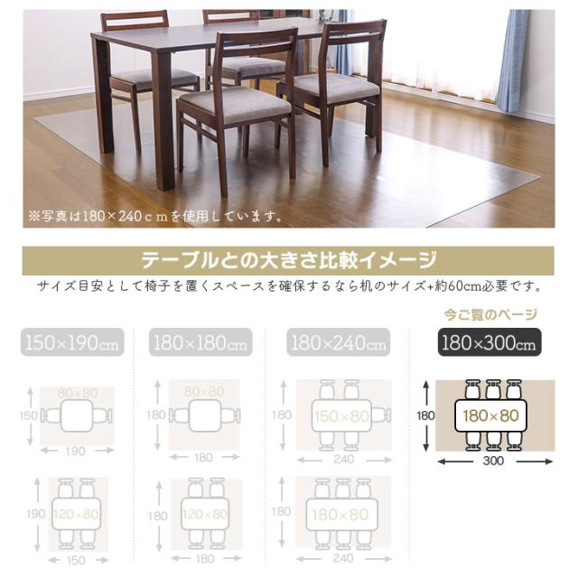 PVCクリアフロアマット180×300 抗菌 抗カビ 180×300cm リビング フロア 傷防止 床 北欧 秋 冬 クリア 透明