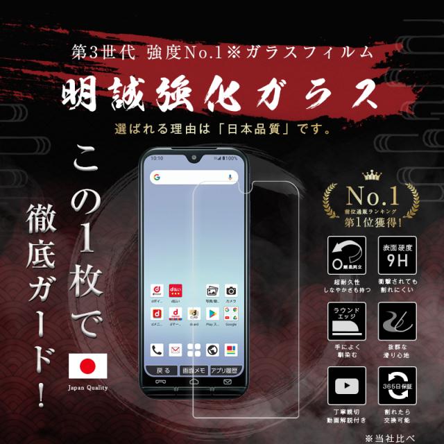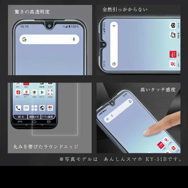 【2枚セット】あんしんスマホ KY-51B / かんたんスマホ3 A205KC 強化ガラス保護フィルム 2.5D ガラスフィルム 画面保護フィルム 液晶保護